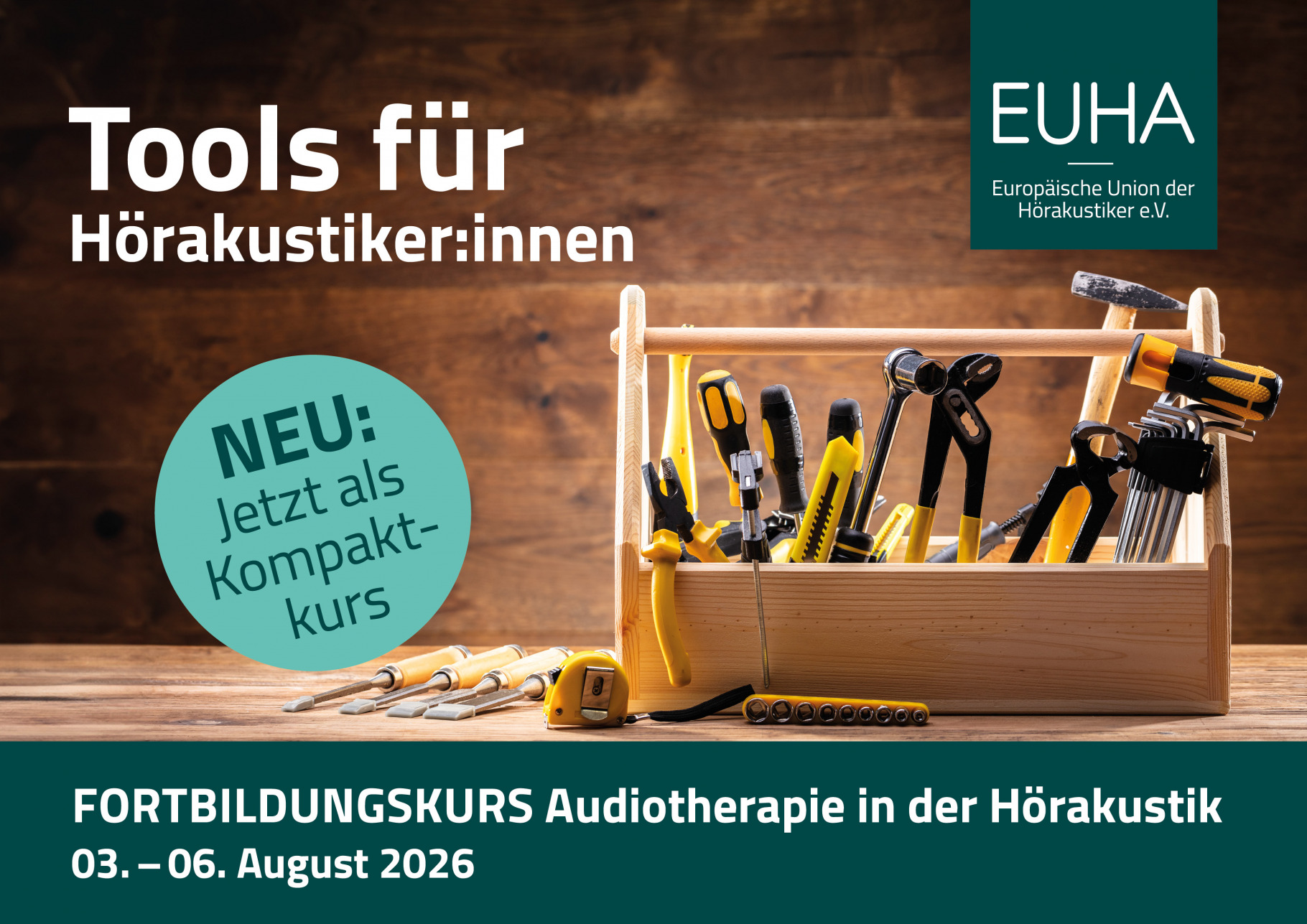 Die EUHA bietet in Kooperation mit der biha den Fortbildungskurs Audiotherapie in der Hörakustik an. Er findet vom 3. bis 6. August 2026 in der Akademie für Hörakustik (afh) in Lübeck statt. Das Kursformat wurde neu strukturiert und findet nun erstmals als Kompaktkurs in 4 Tagen statt.